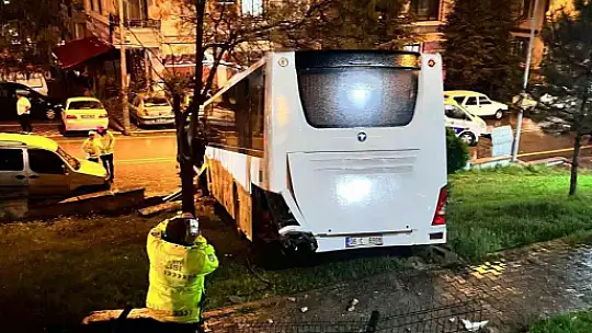 Fren sistemi arızalanan otobüsün parka daldığı anlar kamerada