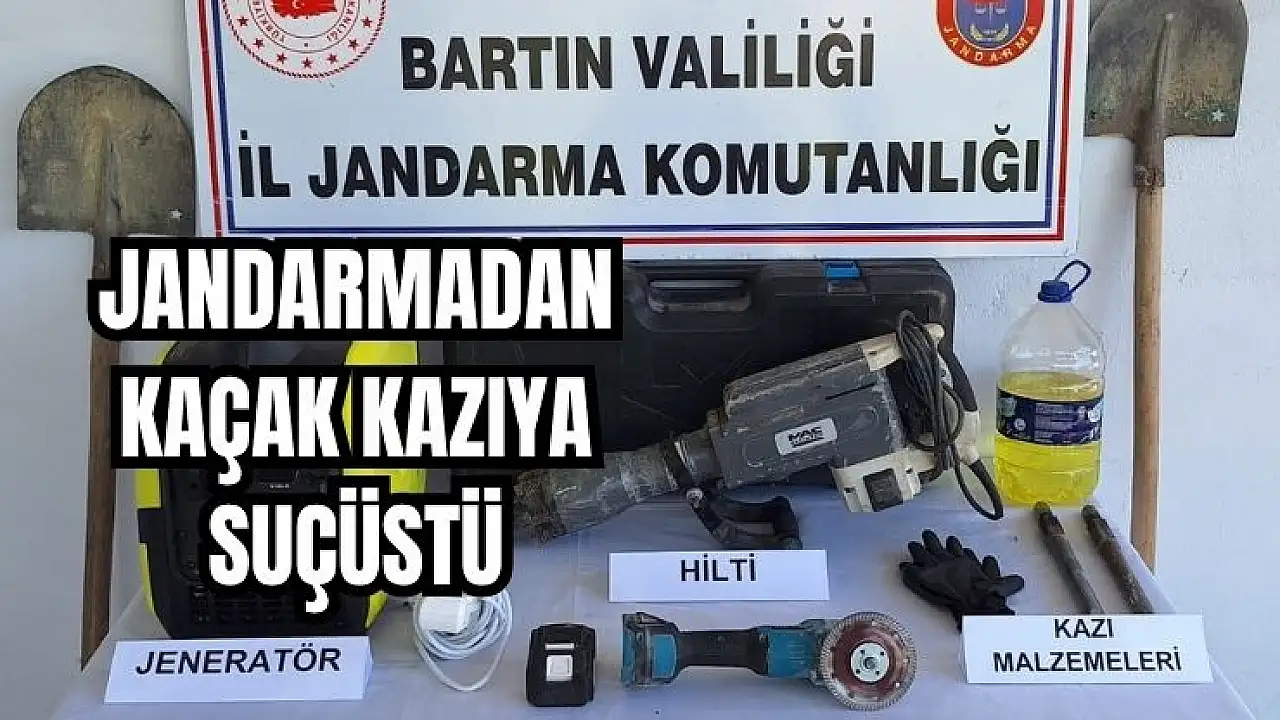 Bartın İl Jandarma Komutanlığı tarafından izinsiz kazı yapan 3 kişi suçüstü yakalandı.
