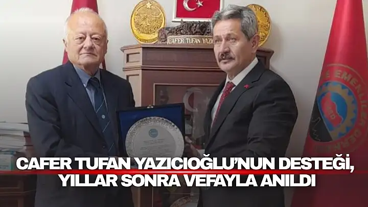 Yıllar sonra o desteği unutmayan TÜRKAP Başkanı Ayhan Tepe, Bartın Emekliler Derneği Başkanı Can Karakaş ile birlikte Yazıcıoğlu'nu makamında ziyaret etti. Tepe, 'Bu plaket bir teşekkürden çok daha fazlası; adaletin, vefanın ve mücadelenin sembolüdür' dedi.