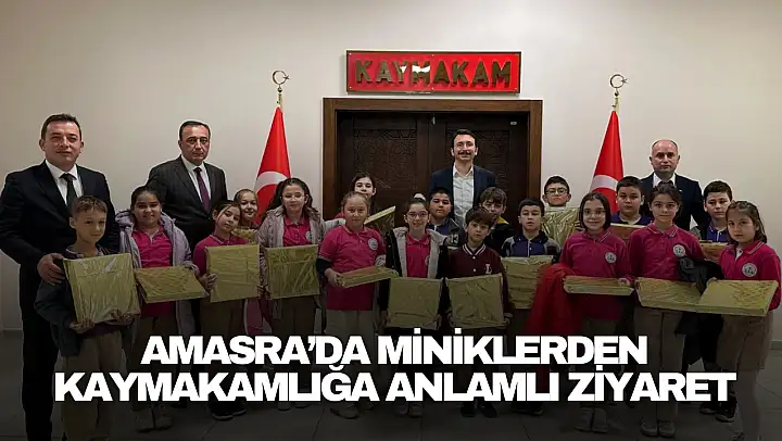 Amasra Kaleşah İlkokulu 4/A sınıfı öğrencileri, İlçe Milli Eğitim Müdürü, okul müdürü ve öğretmenleriyle birlikte Amasra Kaymakamı Muhammed Çetin'i makamında ziyaret etti.