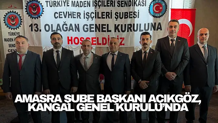 Türkiye Maden İşçileri Sendikası Amasra Şube Başkanı Emrah Açıkgöz, Sivas'ta düzenlenen Kangal Cevher İşçileri Şubesi'nin 13. Olağan Genel Kurulu'nda yer alarak sendikal dayanışmanın güçlü bir örneğini sergiledi. Genel kurula, Genel Başkan Nurettin Akçul ile genel merkez yöneticileri de katılım sağladı.