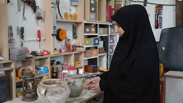 Eski eşyaları gün yüzüne çıkartmanın kendisini mutlu ettiğini ifade eden Saniye Serhatlı, 'Kızım üniversiteyi kazanmıştı, bu vesileyle taşındık. O dönemde eşim Mustafa burada bir iş ortaklığı yaptı. Daha sonra da kendimiz bir atölye açtık. Tabii bu atölye açması bizi çok zorladı. Şu anda da ailecek çalışıyoruz. Hafta sonu çocuklarımız bize destek oluyor. Ben eski, yıpranmış, yahut değerini kaybetmiş, aslı bozulmuş olan ürünleri ya farklı bir ürüne çeviriyorum ya da tadilat yaparak eski haline getiriyorum. Ama benim daha çok tercih ettiğim onları bugünkü yaşantımıza uyarlayarak daha güzel, daha kullanışlı hale getirmek. Su kabaklarıyla iş yapmayı daha çok seviyorum. Onları da buraya geldiğimizde keşfettim. Onlardan lamba, üzerinde boyama yapıyorum. Çünkü resmi daha çok seviyorum. Su kabaklarını önce resim yaparak değerlendirmeye başladım, sonra lamba yaptım. Geri dönüşüme katkıda bulunduğum zaman hem mutlu oluyorum hem de üretmiş olmanın mutluluğunu yaşıyorum. Aslında o eski eşyanın ilk halinden son haline kadar olan hikayesini bir tek siz biliyorsunuz. Onun ilk halini bildiğim için son halini de gördüğümde ben mutlu oluyorum' dedi.