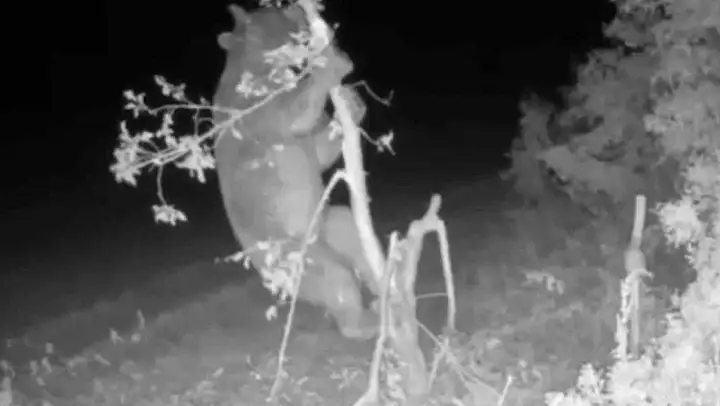 Kastamonu'nun Azdavay ilçesi Mehmetçelebi köyünde yiyecek arayan bir ayı, gece saatlerinde bir evin bahçesine girdi. Ayı bahçede gördüğü meyve ağacına tırmanarak meyveleri tek tek toplayarak yedi. Ayı meyveler için adeta ağacı talan etti. O anlar ise vatandaş tarafından bahçeye yerleştirilen güvenlik kamerasına yansıdı.