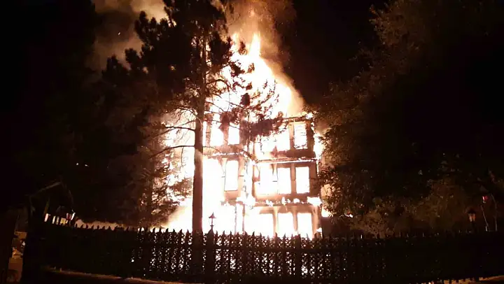 Bolu'nun Mudurnu ilçesinde 1850'li yıllarda inşa edilen Keyvanlar Konağı, sabaha karşı çıkan yangında alev alev yanarak küle döndü. Yangından dolayı evi zarar gören emekli öğretmen tepki gösterdi.