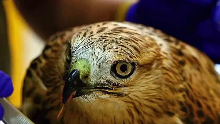 Şahinin genel sağlık durumunun iyi olduğu, ancak besinsizlik ve yorgunluk nedeniyle güç kaybı yaşadığı belirtildi.