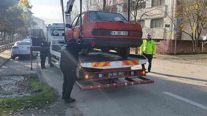 Bolu İl Emniyet Müdürlüğü Trafik Tescil ve Denetleme Şube Müdürlüğü ekipleri, cadde ve sokaklarda aylardır terk edilmiş durumda bulunan araçları tespit etti. Trafik polislerinin koordinesinden, trafik zabıtası ekipleri, düzenlenen tutanaklarla araçların kaldırılması işlemini başlattı. Zabıta ekiplerinin araç kaldırma vinçleriyle yapılan çalışmada, tespit edilen hurda araçlar tek tek toplandı. Şehir genelinde süren çalışmada toplanan araçlar, yediemin otoparkına götürüldü. Şehir merkezinin yanı sıra mahalle aralarında da devam edeceğini belirterek, uzun süre aynı noktada park edilmiş, hasarlı veya terk edilmiş araçların trafik düzenini bozduğunu ve kaldırılacağını öğrenildi.