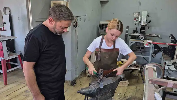 Babasının yanında bıçak ustalığını öğrenen Yaprak Altınışık ise asıl mesleğinin kuyumculuk olduğunu, babasının çalışmalarını gördükçe bıçak sanatına merakının arttığını söyledi. Altınışık, 'Her mesleğin kendine göre bir zorluğu var. Şu anda çırak olarak ilerlediğim için daha çok zorlanıyorum. Bıçak yaparken daha çok gravür kısmında zorlanıyorum. Kabza kısmında işlemeler, dokular çalıştığımızda daha çok zorlanıyorum' dedi.