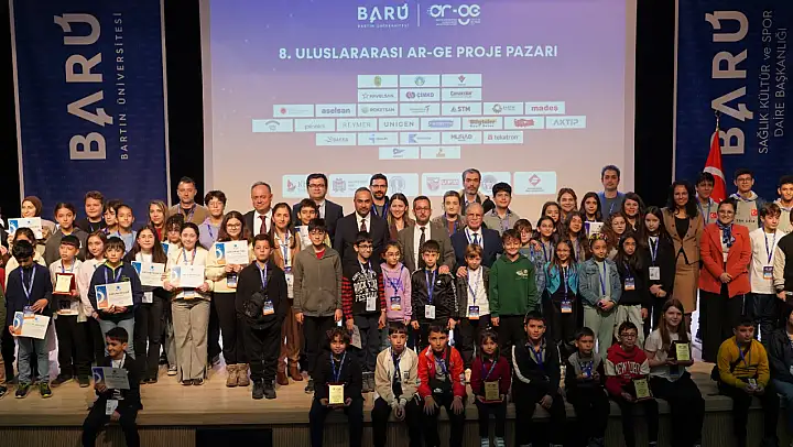 Bartın Üniversitesinin (BARÜ) '8. Uluslararası Ar-Ge Proje Pazarı'nda iki gün boyunca ilkokul ve ortaokul öğrencileri de projelerini sergiledi. Öğrenciler sergiledikleri 56 projeyle özgün fikirlerini ortaya koyma, bilimsel süreçleri deneyimleme ve çalışmalarını katılımcılara sunma fırsatı buldu. 'Çocuk mucitler'in dereceye giren projeleri Çocuk Eğitimi Uygulama ve Araştırma Merkezi tarafından organize edilen bir törenle açıklandı. Öğrencilerin bilime olan ilgisinin geleceğe dair umutları artırdığını vurgulayan BARÜ Rektörü Prof. Dr. Ahmet Akkaya, çocukların heyecanına ortak olarak ödüllerini takdim etti.