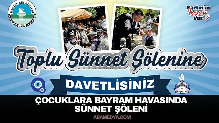 Bartın Belediyesi'nden yapılan açıklamada, 'Toplu Sünnet Şölenimize tüm halkımız davetlidir. Çocuklarımızın mutluluğunu hep birlikte paylaşacağımız bu özel günde sizleri aramızda görmekten büyük mutluluk duyacağız' denildi.