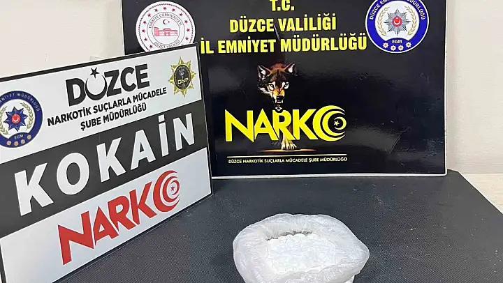 Düzce Cumhuriyet Başsavcılığı koordinesinde Narkotik Suçlarla Mücadele Şube Müdürlüğü ekiplerince İstanbul'dan Ankara iline uyuşturucu madde sevk eden otobüste yolcu olarak bulunan M.K. (53) isimli şahsın üst araması yapıldı. 2 suç kaydı bulunan M.K.'nın üzerinde piyasa değeri 650 bin TL değerinde 153 gram kokain maddesi ele geçirildi. Uyuşturucu madde ticareti yapmak suçundan adli işlem yapılan şüphelinin tutuklandığı bildirildi.