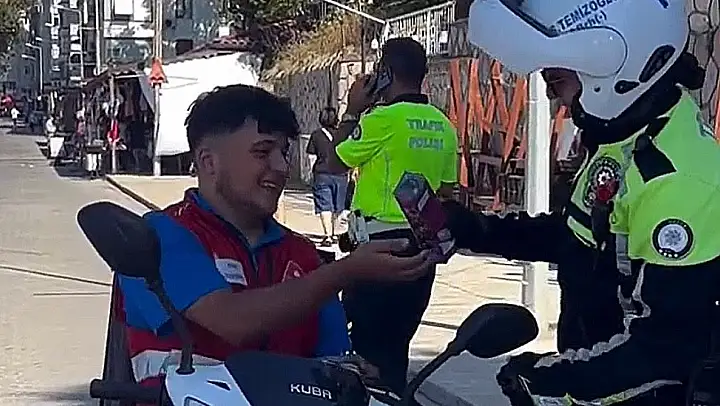 Düzce'nin Akçakoca ilçesinde, Düzce İl Emniyet Müdürlüğü'ne bağlı trafik şubesi ekipleri ilçede yaşanan yoğunluk sebebiyle takviye ekip olarak gitti. İlçede motosiklet ve kask uygulaması yapan trafik ekipleri kask takanlara çerez ikram ederken, takmayanlara ise cezai işlem uyguladı. Polis memurlarının samimi tavrı ise takdir topladı.