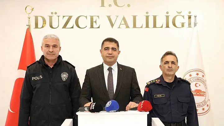 Düzce'de terör örgütlerine yönelik operasyonlardan da bahseden Vali Aslan, '2025 yılında ilimiz sınırları içerisinde terör örgütü PKK'ya yönelik 11 operasyon gerçekleştirilmiş, 5 şahıs gözaltına alınmış, 1 şahıs tutuklanmıştır. FETÖ Terör Örgütü'ne yönelik gerçekleştirilen 14 operasyonda 13 şahıs, DEAŞ Terör Örgütü'ne yönelik ise 18 operasyonda 18 şahıs gözaltına alınmıştır. Gözaltına alınan şahıslardan 2'si tutuklanmıştır' dedi.