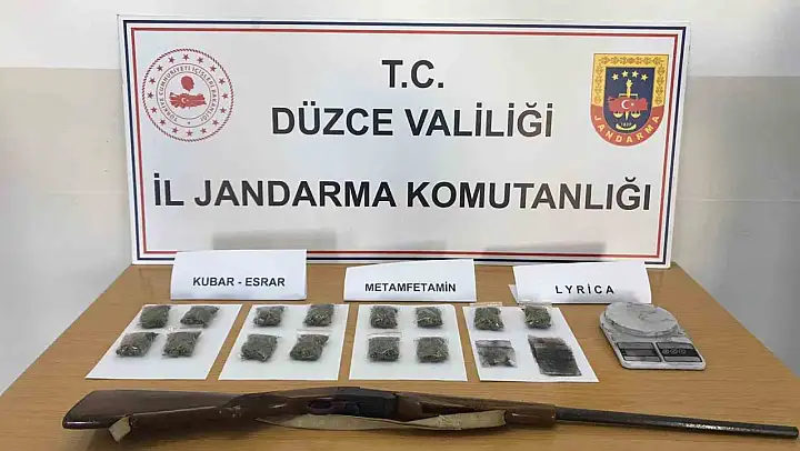 Düzce Cumhuriyet Başsavcılığı'nın uyuşturucu madde ticaretinin önlenmesine yönelik yürüttüğü soruşturma çerçevesinde Gölyaka ilçesinde ikamet eden A.A. (39) isimli şahsın ikametinde Gölyaka İlçe Jandarma Komutanlığı ve Düzce İl Jandarma Komutanlığı KOM şube ekiplerince evde yapılan aramada 70 gram paketlenmiş kubar esrar, 3 adet reçete ile satılan hap, 1,07 gram metamfetamin ele geçirildi. A.A. işlemlerinin ardından adli makamlara sevk edilecek.