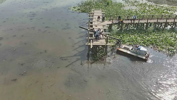 Sonbahar aylarının gelmesi ile yerli ve yabancı turistlerin sıkça ziyaret ettiği Efteni Gölü'nde ahşap iskele yenilenmeye başladı.
