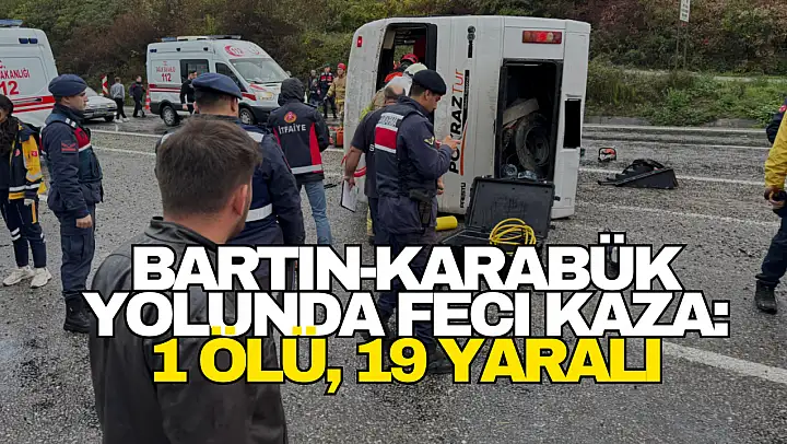 Bartın-Karabük yolu Murat Bey mevkisinde sabah saatlerinde meydana gelen trafik kazasında, Organize Sanayi Bölgesi'ne işçi taşıyan servis minibüsü kaygan yolda kontrolden çıkararak devrildi.