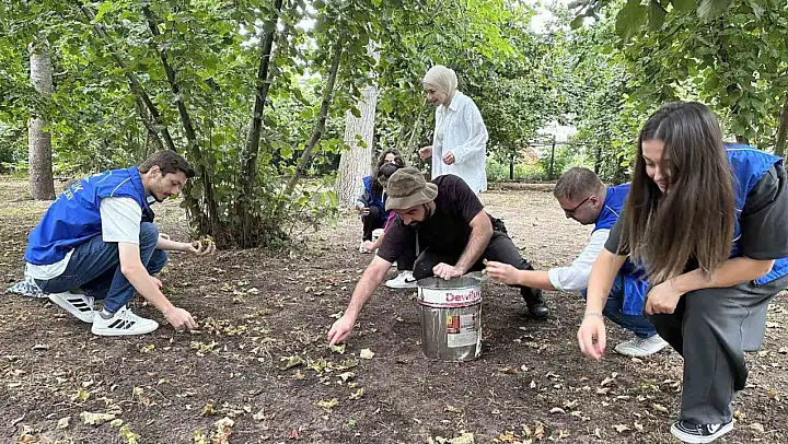 Gençler fındık toplayarak üreticiye destek olurken farklı bir yaşadılar.