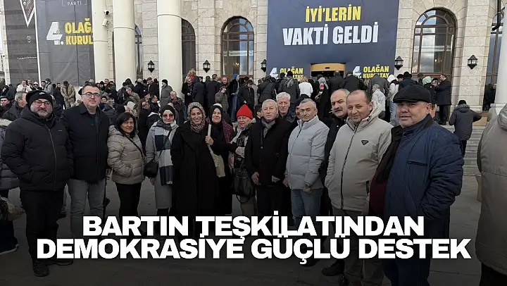 Bartın il ve ilçe teşkilatlarından oluşan İYİ Parti heyeti, olumsuz hava koşullarına rağmen Ankara'da gerçekleştirilen İYİ Parti 4. Büyük Olağan Genel Kurulu'na katılarak partiye ve demokrasiye olan bağlılığını bir kez daha ortaya koydu. Yoğun katılımla gerçekleşen kongrede büyük bir coşku ve demokratik olgunluk dikkat çekti.