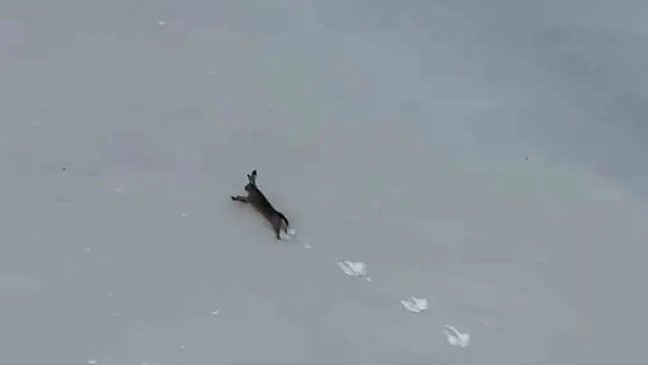 Kar üzerinde koşan yaban tavşanı görüntülendi
