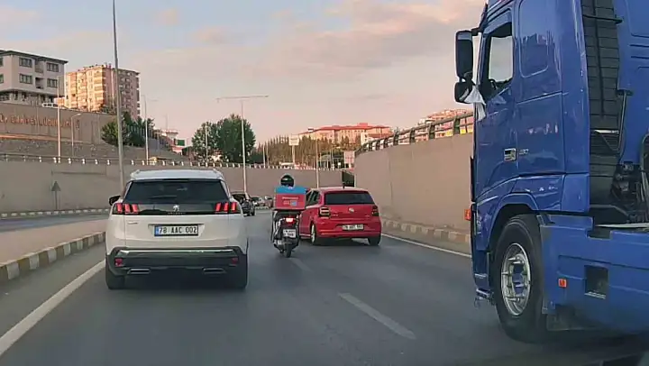 Zikzak yapan bir otomobil, aynı istikamette ilerleyen motosikletliye çarpmaktan son anda kurtuldu. Sürücülerin dikkatsiz ve kural tanımaz davranışları, trafikteki diğer vatandaşların can güvenliğini tehlikeye attı.