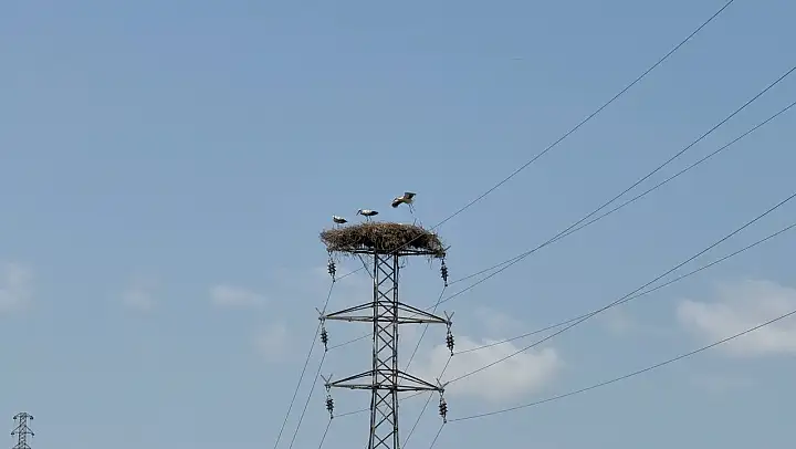 Öte yandan, bazı leyleklerin yüksek gerilim hattı direği üzerine yaptıkları yuva da dikkat çekti. Yuvanın, ihtimal risklere rağmen uzun zaman önce yapıldığı görülüyor.