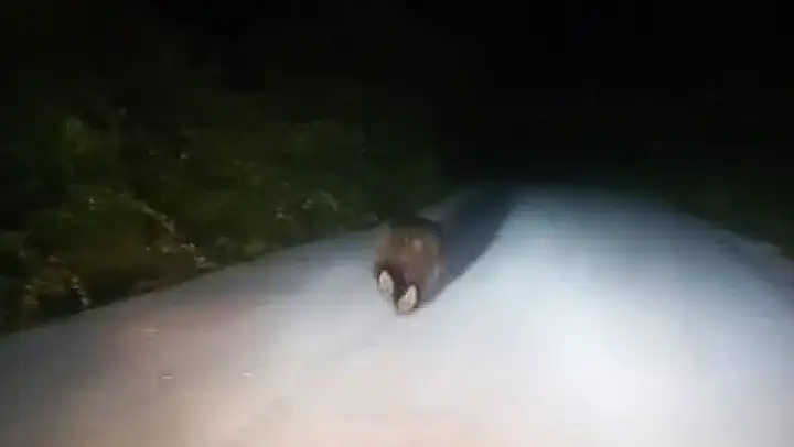 İlçeye bağlı Ovaşeyhler Köyü yolunda ilerleyen vatandaşlar, bir süre önlerinde koşan ayıyı görünce o anları kaydetti. Ayının dakikalarca araç önünde koştuğu anlar görüntülere yansırken, kaydı yapanların 'Dayı buradan Antalya'ya gidilir mi?' şeklindeki esprili sözleri gülümsetti.