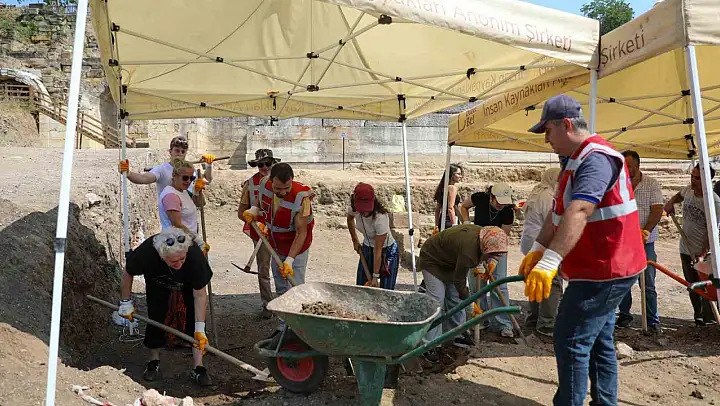 Konuralp Antik Tiyatro kazılarına gönüllü kazı desteği devam ediyor