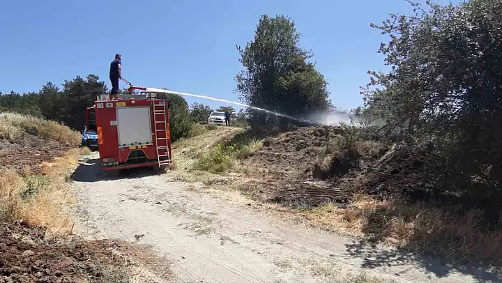 Kuru otlar alev aldı, köylüler toprakla söndürdü