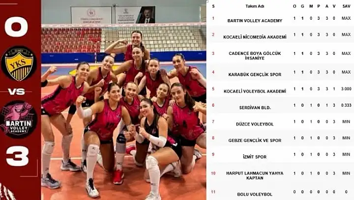 Kocaeli Şampiyon Hasan Gemici Spor Salonu'nda oynanan mücadelede temsilcimiz Bartın Volley Akademi, rakibini 3-0'lık net bir skorla mağlup ederek lige müthiş bir başlangıç yaptı.