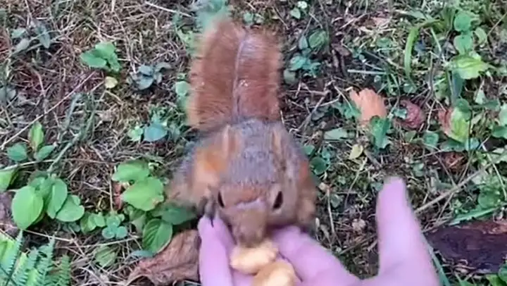 Ormanda karşılaştıkları sincabı elleri ile besledi