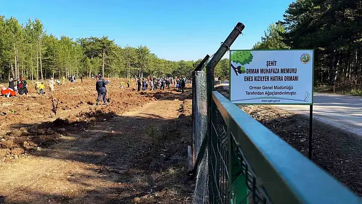 Karabük'te 'Milli Ağaçlandırma Günü' dolayısıyla düzenlenen etkinlikte, Eskişehir'deki orman yangınını söndürme çalışmaları sırasında şehit olan orman işçisi Enes Kızılyer adına çeşme açılışı yapılarak hatıra ormanına fidan dikildi.