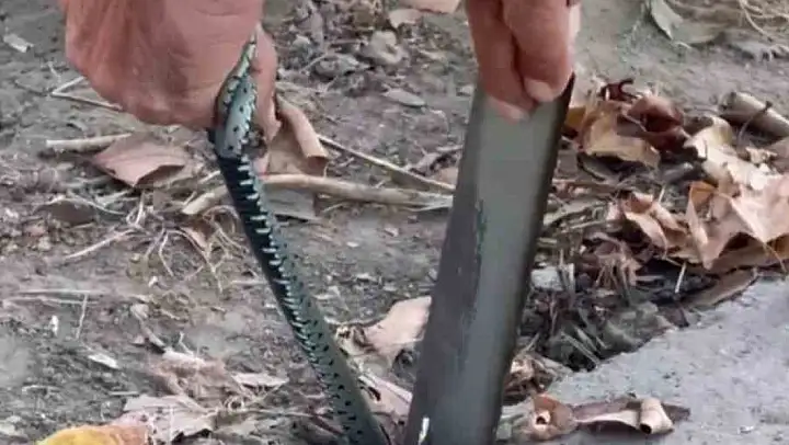 Zonguldak'ın Çaycuma ilçesine bağlı Saltıkova beldesinde kaldırım taşlarının arasında sıkışan yılanı kurtarmak için vatandaşlar seferber oldu.