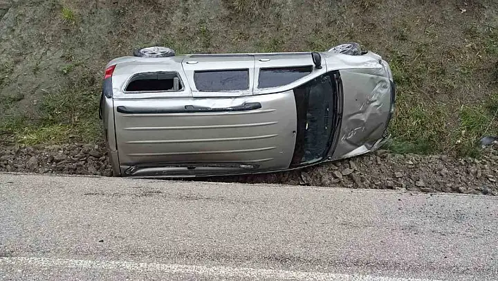 Kastamonu yağış sebebiyle kayganlaşan yolda virajı alamayan hafif ticari aracın devrilmesi neticesinde sürücü yaralandı.