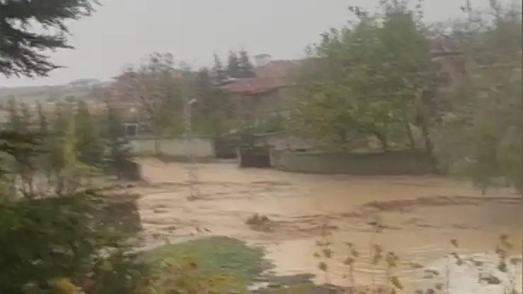 Ankara’nın Bala ilçesine bağlı Belçarşak Mahallesinde yoğun yağışın ardından sel meydana geldi.
