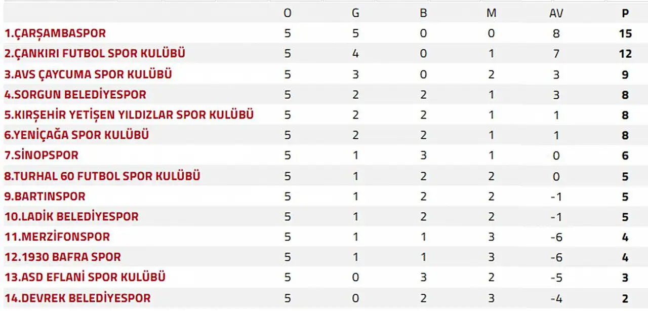 7 karşılaşmada 14 gol sesinin yükseldiği haftada lider Çarşambaspor Bafraspor deplasmanında Bedirhan Batukan Ay’ın golüyle 0-1 kazanarak puanını 15’e yükselttive liderliğini korumaya devam etti.