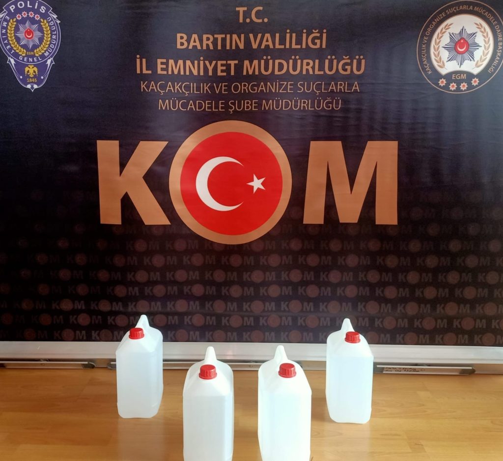Bartın İl Emniyet Müdürlüğü Kaçakçılık ve Organize Suçlarla Mücadele Şube Müdürlüğü ekipleri, kaçakçılığın önlenmesi ve takibine yönelik yürüttükleri çalışmalar kapsamında önemli bir operasyona imza attı. Yapılan çalışmada, bir şahsın üzerinde ve kontrolünde bulunan 20 litre etil alkol ele geçirildi.