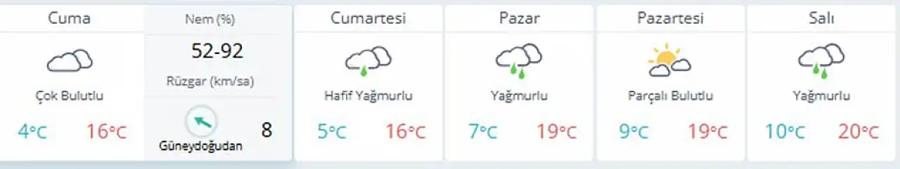 Cuma günü havanın çok bulutlu geçmesi beklenirken sıcaklığın 16 dereceye yükselmesi bekleniyor.