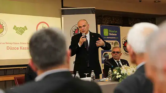 Düzce TSO Yönetim Kurulu Başkanı Erdoğan Bıyık yaptığı konuşmasında; "Bugün aramızda Bakanımız Dr. Faruk Özlü bulunuyor. Birazdan sizlere hitap edecek kendileri. Toplu Komite Toplantımıza teşriflerinden dolayı kendilerine teşekkür ediyoruz. Bildiğiniz üzere yeni hizmet binamızda çalışmalar devam ediyor. Proje aşamasından bu yana kendi özel projesi gibi projemizi sahiplenen ve İnşaat Komisyonumuz ile birlikte sonuca ulaşmak için büyük uğraşlar veren Düzce Belediyesi İmar Müdürü Kalender Aydın ve ekibine teşekkür ediyorum. Projenin başından itibaren ilgili tüm birimleri harekete geçiren ve inşaat aşamasına gelmemizdeki en büyük paylardan birine sahip olan Bakanımıza (Faruk Özlü) şükranlarımızı sunuyoruz. Düzce’de 25 yıldır gündemde olan ve daha önce birçok kez girişimde bulunulan Gümrük Müdürlüğü konusunda da Milletvekilimiz Ayşe Keşir’in başlatmış olduğu süreci nihayete erdiren ve Düzce Gümrük Müdürlüğü’nün resmi olarak kurulmasında ilk günden bu yana büyük emekleri olan Bakanımız Faruk Özlü’ye 5 bin üyemiz adına sonsuz teşekkürlerimizi sunuyorum. Bildiğiniz üzere yine belediyemiz ile birlikte sürdürdüğümüz DOSKİM projemiz var. Bu projenin de tüm teknik çizimleri, projelendirmeleri ve projenin hayata geçirilmesi için atılması gereken diğer adımları yine Düzce Belediyesi ekiplerimiz ile yapıyoruz. Bu noktada da projeyi benimseyip bir an önce hayata geçirilmesi için bizlerle birlikte aynı heyecanı yaşayan Bakanımıza bir kez daha teşekkür ediyoruz" ifadelerini kullandı.