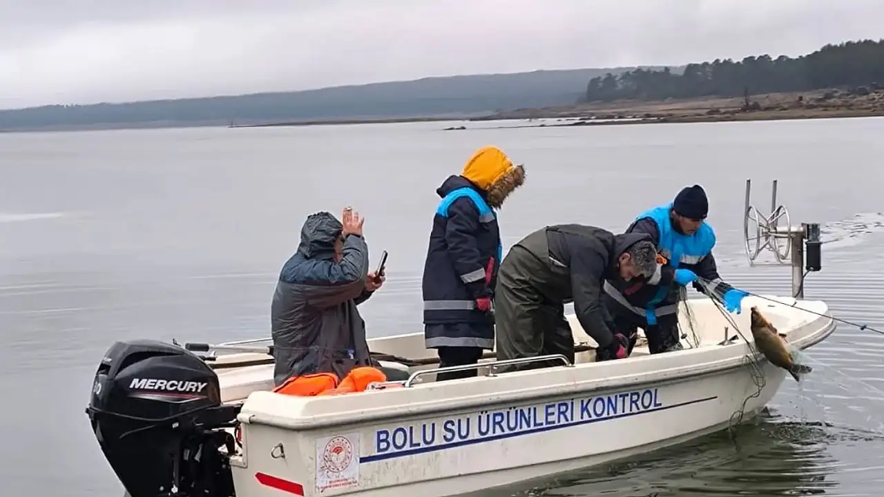 Bolu'da gölün ortasında 500 metrelik kaçak ağ ele geçirildi