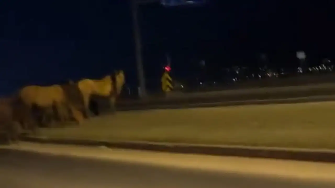 Refüjdeki çimleri yiyerek karınlarını doyuran atlar, zaman zaman yola yaklaşarak trafikte tehlike oluşturdu. Güzergahı kullanan sürücüler, atlara çarpmamak için hızlarını düşürerek kontrollü şekilde ilerledi. Bir süre orta refüjde otlayan atlar, daha sonra bölgeden uzaklaşarak gözden kayboldu.