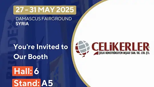Suriye’nin en prestijli fuarı olan Buıldex Syrıa 2025 Fuarı'nda Türkiye’nin mühendislik gücünü ve üretim kalitesini temsil eden Çelikerler Çelik Konstrüksiyon firması binlerce ziyaretçi ağırladı.