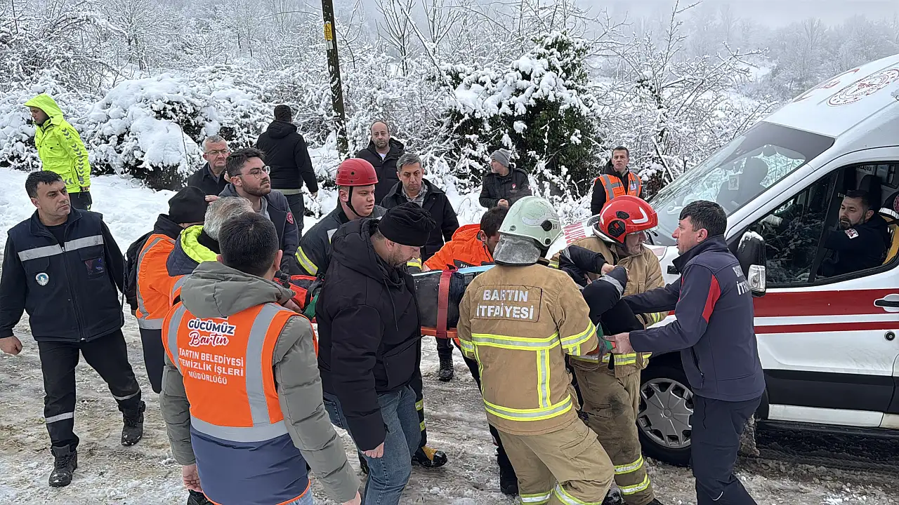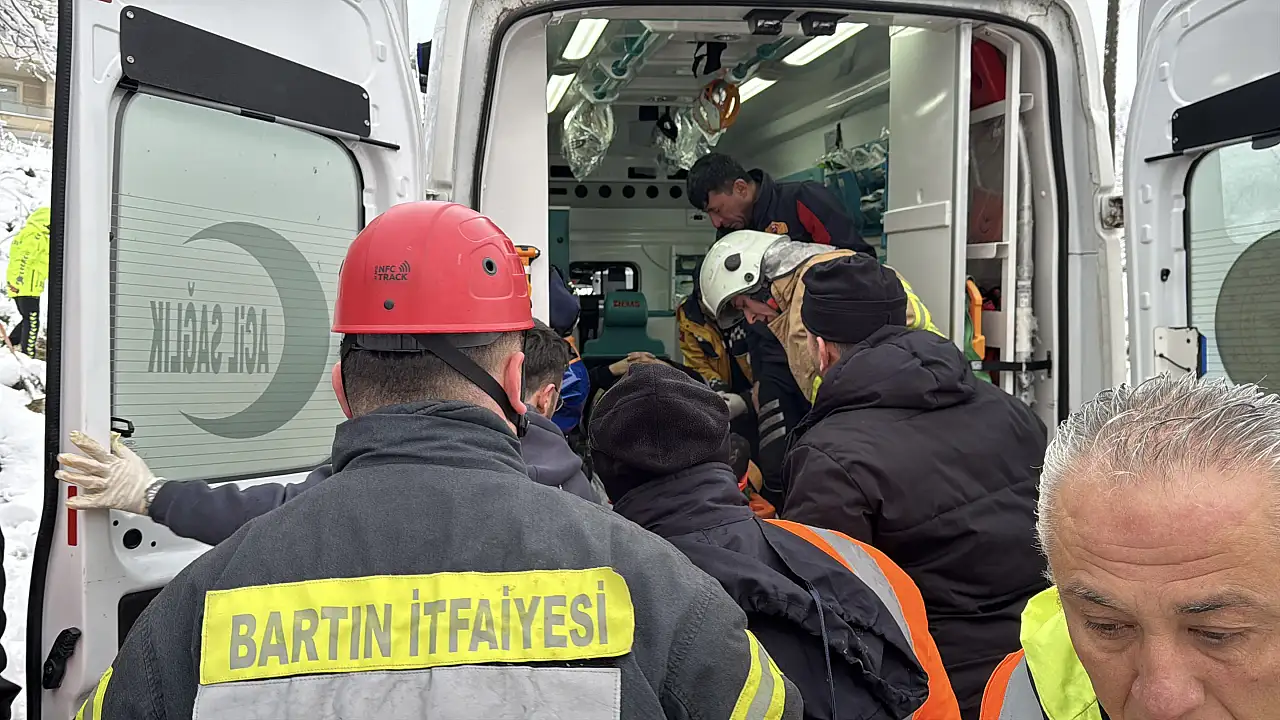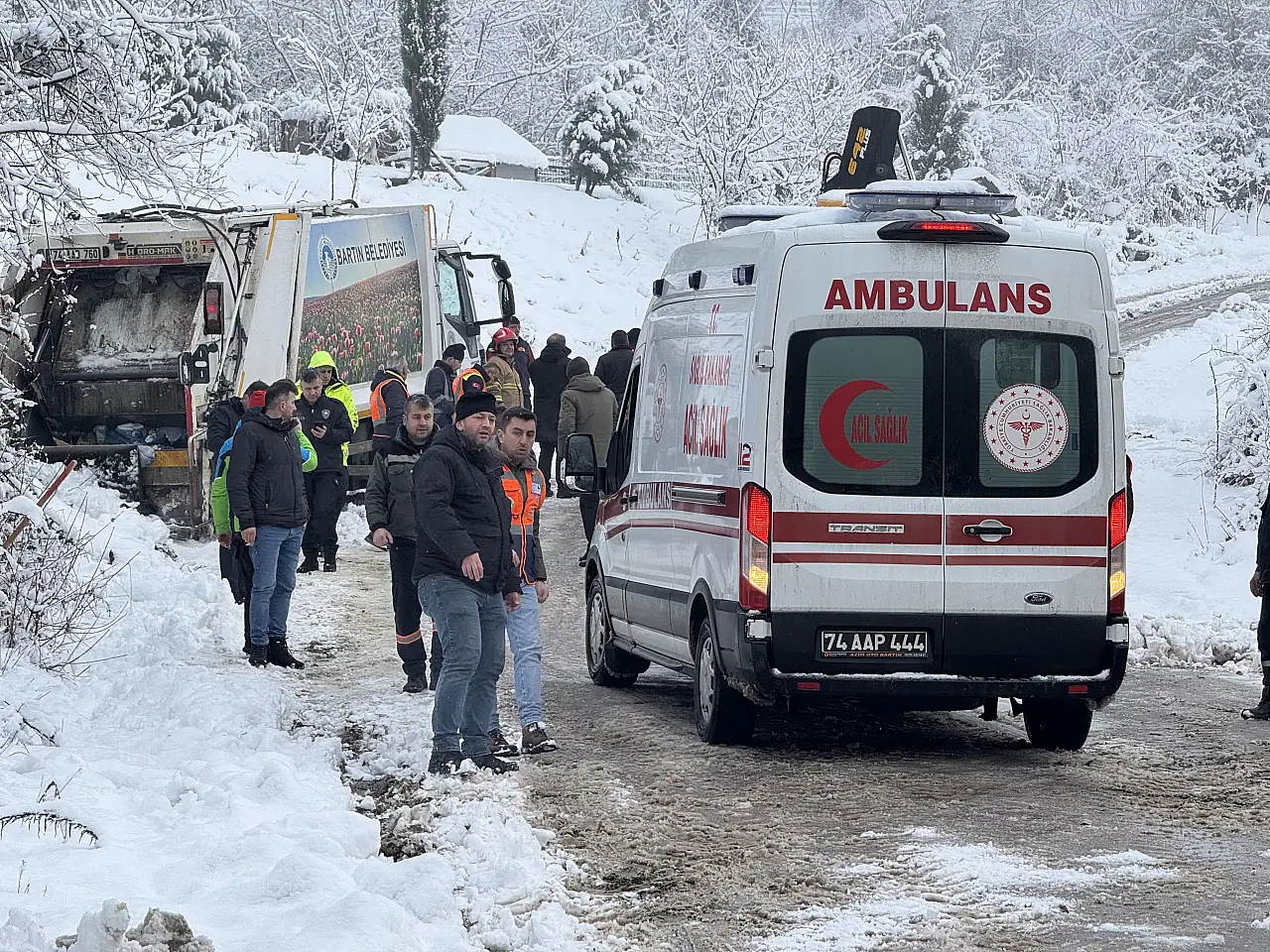 Bartın’da karda kayan çöp kamyonu ile toprak arasında sıkışan işçi yaralandı