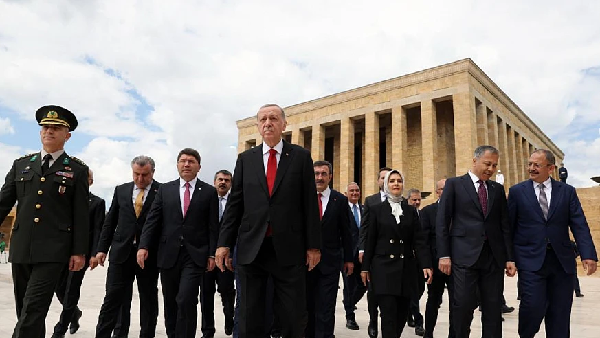 Cumhurbaşkanı Recep Tayyip Erdoğan, yeni Kabine üyeleriyle birlikte Anıtkabir’i ziyaret etti. Aslanlı Yol' dan yürüyerek Atatürk'ün mozolesine çıkan Erdoğan'a, Cumhurbaşkanı Yardımcısı Cevdet Yılmaz, Adalet Bakanı Yılmaz Tunç, Aile ve Sosyal Hizmetler Bakanı Mahinur Özdemir Göktaş, Çalışma ve Sosyal Güvenlik Bakanı Vedat Işıkhan, Çevre, Şehircilik ve İklim Değişikliği Bakanı Mehmet Özhaseki, Dışişleri Bakanı Hakan Fidan, Enerji ve Tabii Kaynaklar Bakanı Alparslan Bayraktar, Gençlik ve Spor Bakanı Osman Aşkın Bak, Hazine ve Maliye Bakanı Mehmet Şimşek, İçişleri Bakanı Ali Yerlikaya, Kültür ve Turizm Bakanı Mehmet Nuri Ersoy, Millî Eğitim Bakanı Yusuf Tekin, Millî Savunma Bakanı Yaşar Güler, Sağlık Bakanı Fahrettin Koca, Sanayi ve Teknoloji Bakanı Mehmet Fatih Kacır, Tarım ve Orman Bakanı İbrahim Yumaklı, Ticaret Bakanı Ömer Bolat, Ulaştırma ve Altyapı Bakanı Abdulkadir Uraloğlu, Cumhurbaşkanlığı İletişim Başkanı Fahrettin Altun, Cumhurbaşkanlığı Özel Kalem Müdürü Hasan Doğan da eşlik etti.