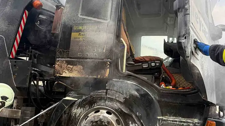 D100 çekicide çıkan yangını itfaiye söndürdü