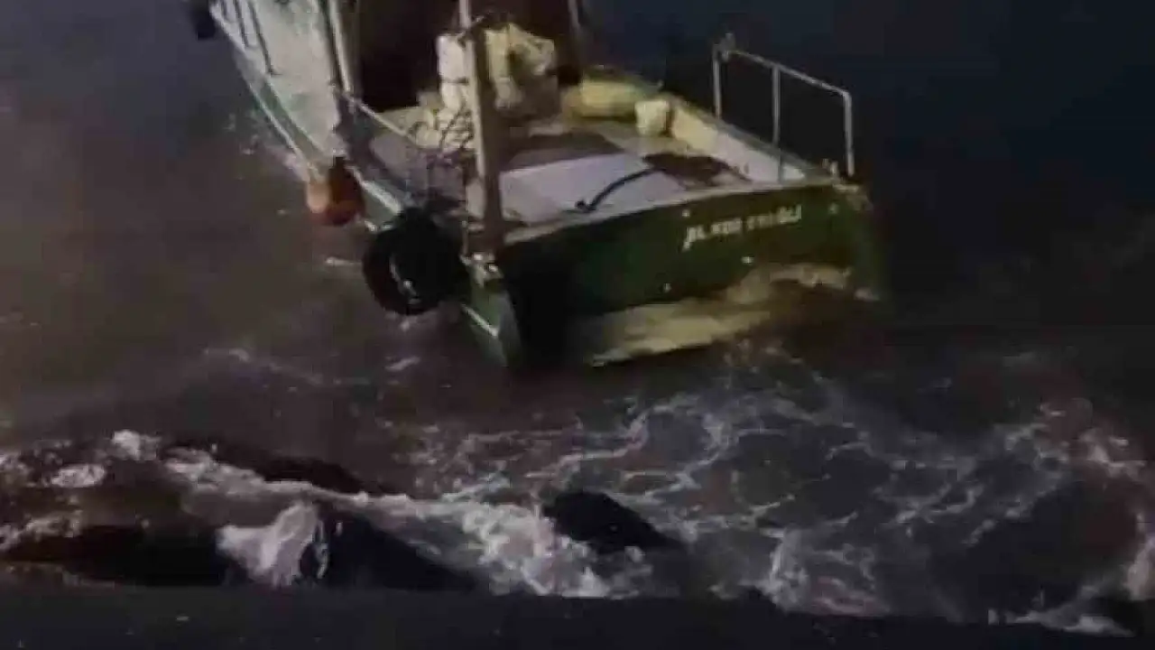 Dalgalarla savrulan balıkçı teknesinin kurtarılma anları ortaya çıktı