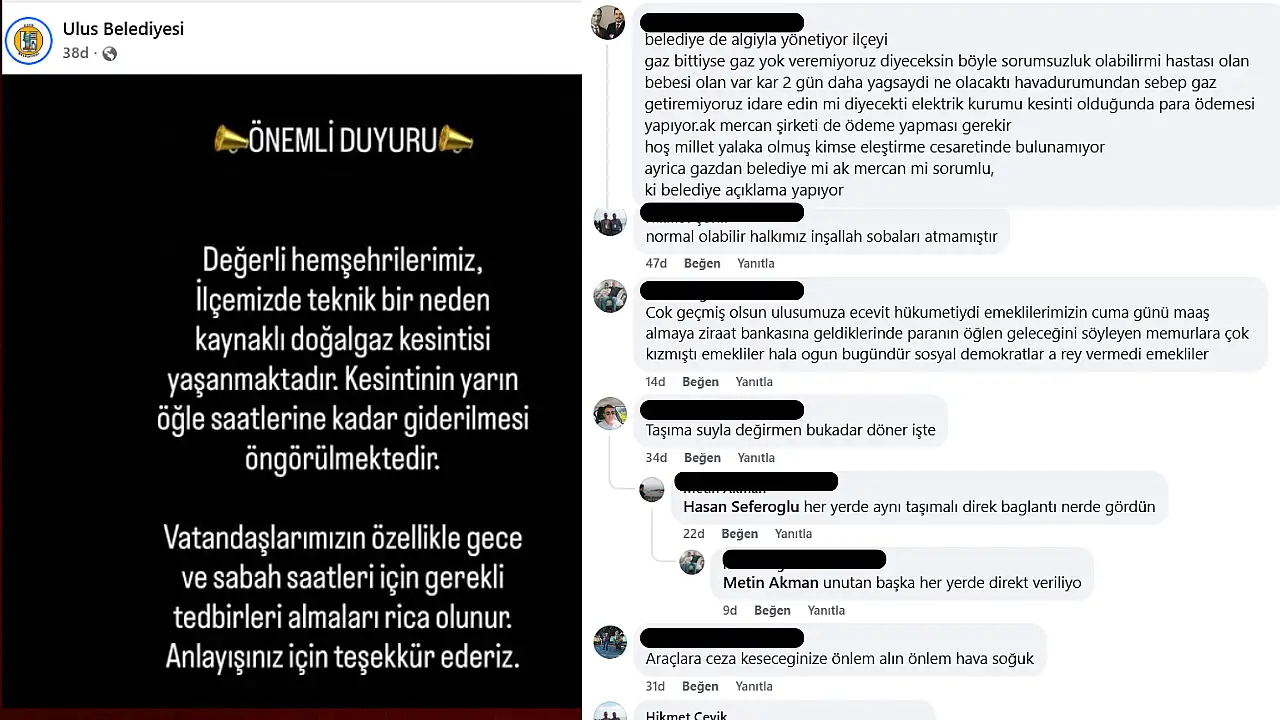 Ulus Belediyesi tarafından yapılan “teknik bir neden kaynaklı doğalgaz kesintisi” duyurusu, ilçede tepkileri de beraberinde getirdi. Kesintinin yarın öğle saatlerine kadar giderilmesinin öngörüldüğü belirtilirken, vatandaşlardan özellikle gece ve sabah saatleri için tedbir almaları istendi.