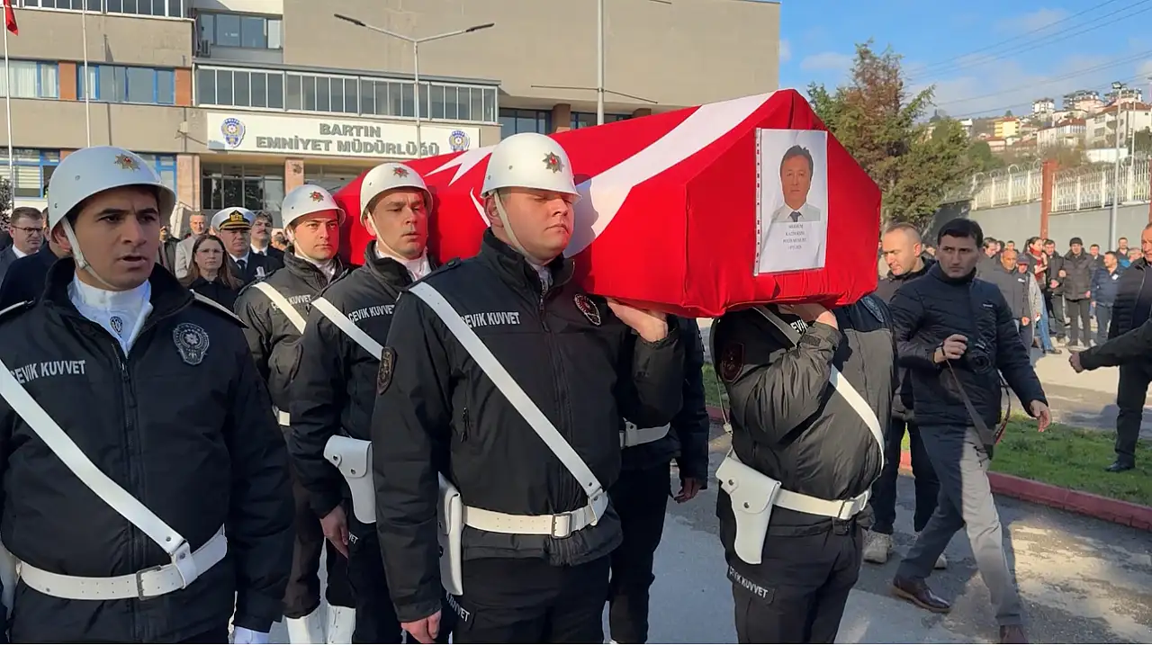Trafik kazası sonucu emekliliğine 4 gün kala hayatını kaybeden polis memuru için Bartın Emniyet Müdürlüğünde tören düzenlendi
