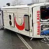 Düzce'de ambulansın devrilmesi sonucu meydana gelen kazada 2 kişi yaralandı.