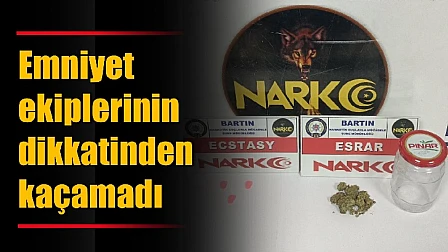 Y.B. isimli şahsın üzerinde ve iş yerinde yapılan aramalarda 3,88 gr esrar maddesi ve 3 adet ecstasy hap ele geçirildi.