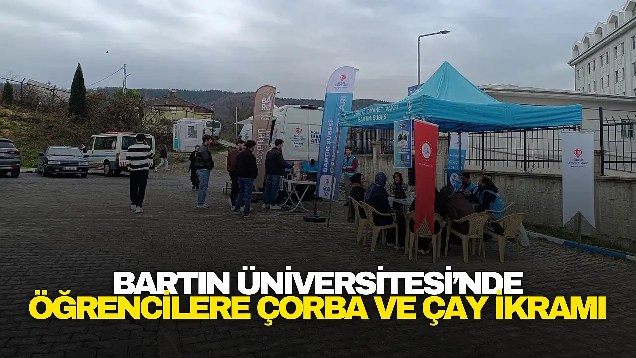 Bartın Üniversitesi’nde final sınav haftasının yoğun temposu sürerken, öğrencilere moral vermek amacıyla anlamlı bir ikram programı düzenlendi. Kutlubey Kampüsü’nde gerçekleştirilen etkinlikte, Türkiye Diyanet Vakfı (TDV) Bartın Şubesi Mobil İkram aracıyla öğrencilere sıcak çorba ve çay ikram edildi.