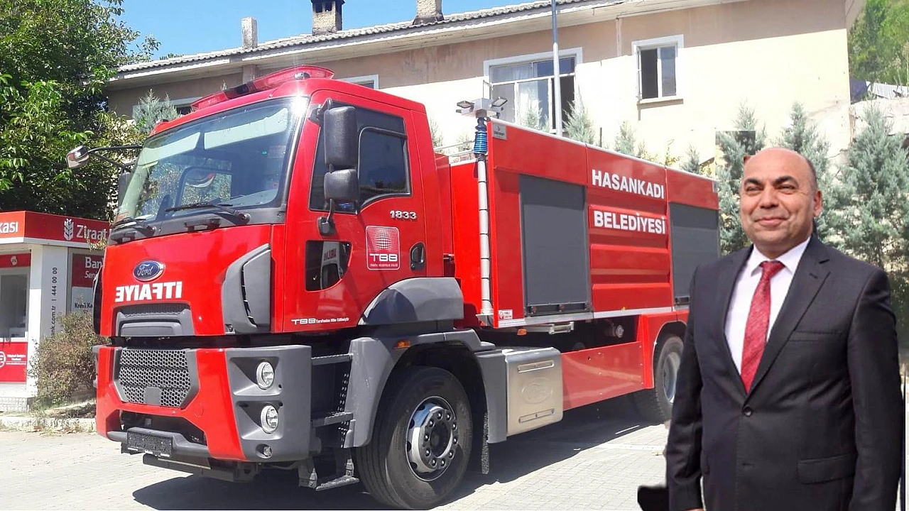 Hasankadı Belediye Başkanı Şeref Emiroğlu beldeye tam donanımlı itfaiye aracı kazandırdı.